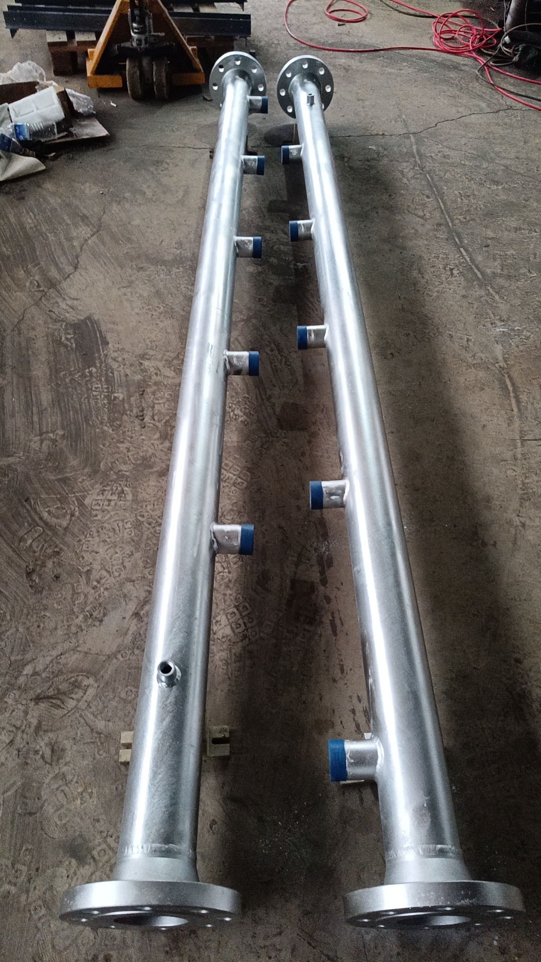 钢瓶集流管是是有美标或国标法兰精密焊接而成,经过严格打压测试,外表是由热镀锌加工处理,具有良好耐腐蚀性。